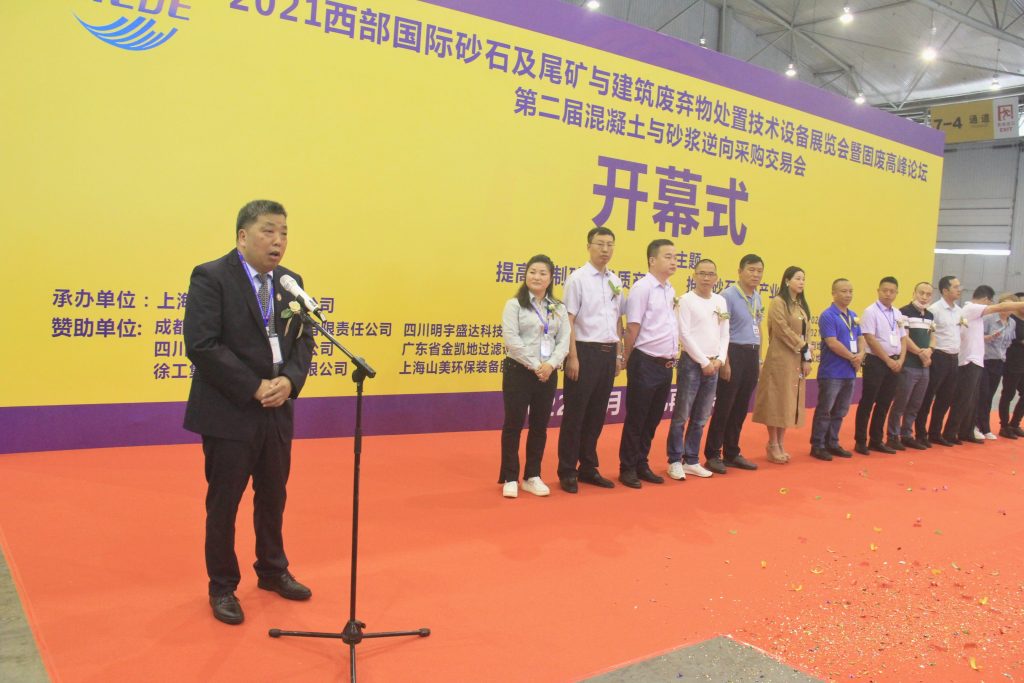 ? ? 9月16日,2021中國西部成都國際砂石及尾礦與建筑廢棄物處置技術(shù)設(shè)備展覽會暨砂石產(chǎn)業(yè)高峰論壇在四川成都世紀城國際會展中心開幕,展會以提高機制砂石優(yōu)質(zhì)產(chǎn)能、推動機制砂石產(chǎn)業(yè)升級為使命,旨在促進砂石骨料產(chǎn)業(yè)綠色、健康、環(huán)保、高質(zhì)量、融合發(fā)展。南昌礦山機械有限公司(下稱“南昌礦機”)董事長李順山出席剪彩儀式。