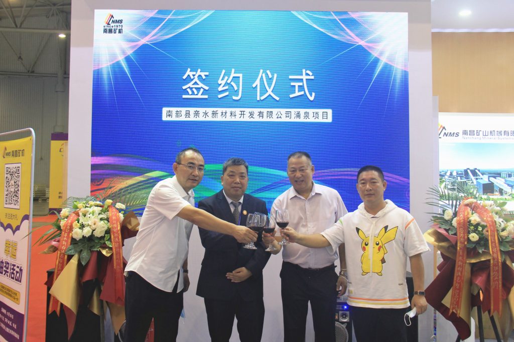 ? ? 開幕式上,南昌礦機與南部縣親水新材料開發(fā)有限公司(下稱“南部縣親水新材料”)、南部縣聚龍建材有限公司(下稱“聚龍建材”)、南部縣永悅建材有限公司(下稱“永悅建材”)共同舉行了“南部縣親水新材料涌泉項目”簽約儀式。南部縣親水新材料執(zhí)行董事李發(fā)強、聚龍建材總經(jīng)理張猛、永悅建材總經(jīng)理劉平與南昌礦機董事長李順山上臺簽署項目合作協(xié)議,標志著四方就涌泉一廠、涌泉二廠兩條砂石生產(chǎn)線正式達成合作。