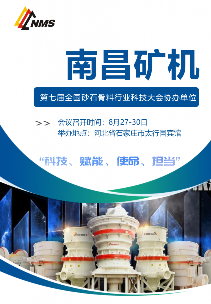 8月27-30日,第七屆全國砂石骨料行業(yè)科技大會將在河北省石家莊市舉辦,南昌礦山機械有限公司(以下簡稱“南昌礦機”)將出席本次會議。