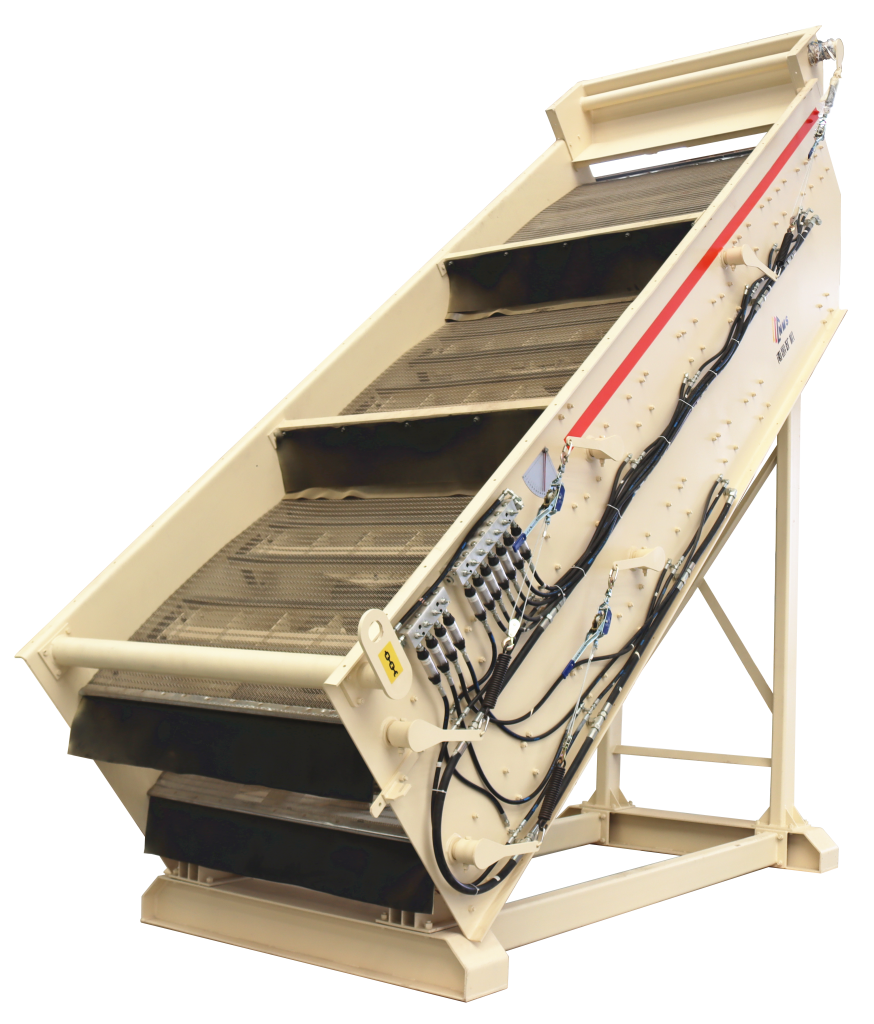 ? ? HFS液壓高頻篩采用原裝進(jìn)口液壓振動(dòng)泵驅(qū)動(dòng),頻率可以通過調(diào)節(jié)液壓流量來調(diào)節(jié);利用先進(jìn)的篩分原理,使粗料被彈的更高,細(xì)料接觸篩面更頻繁;設(shè)備通過振梁拍打篩面實(shí)現(xiàn)高頻篩分,振動(dòng)強(qiáng)度大,振動(dòng)梁結(jié)構(gòu)簡單、可靠;快速便捷的篩網(wǎng)張緊機(jī)構(gòu),便于現(xiàn)場更換篩網(wǎng);具有先進(jìn)的液壓控制系統(tǒng),液壓系統(tǒng)主要部件均采用原裝進(jìn)口件;每個(gè)振動(dòng)單元實(shí)現(xiàn)獨(dú)立調(diào)節(jié)控制,可滿足不同工況條件。