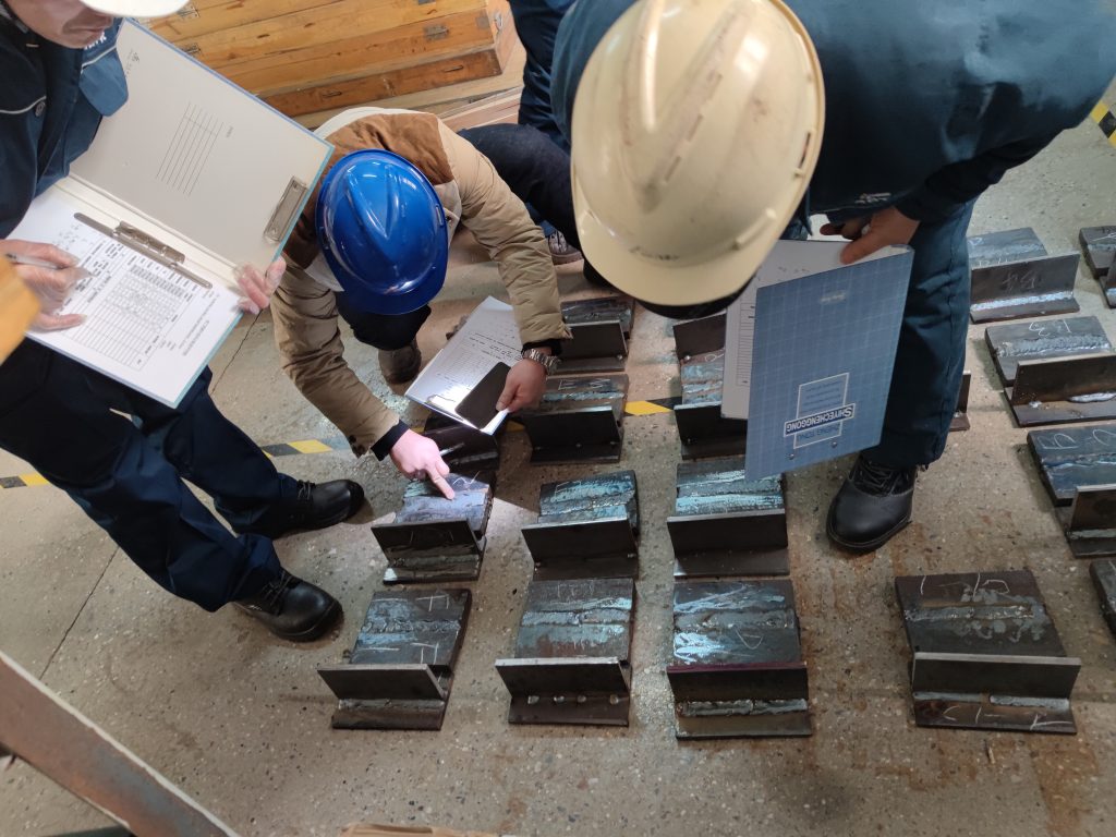 ? ? 本次評比由理論知識考試和實(shí)際操作組成,評比對象為企業(yè)車間焊工。所有參賽人員先進(jìn)行筆試測試?yán)碚撝R,筆試成績占競賽總分30%;其次是實(shí)操項(xiàng)目,包括板對接平焊1G位置(實(shí)芯焊絲二氧化碳?xì)怏w保護(hù)焊 GMAW)、板橫角焊2F位置(實(shí)芯焊絲二氧化碳?xì)怏w保護(hù)焊 GMAW),采用抽簽方式分組進(jìn)行,實(shí)操成績占競賽總分的70%。