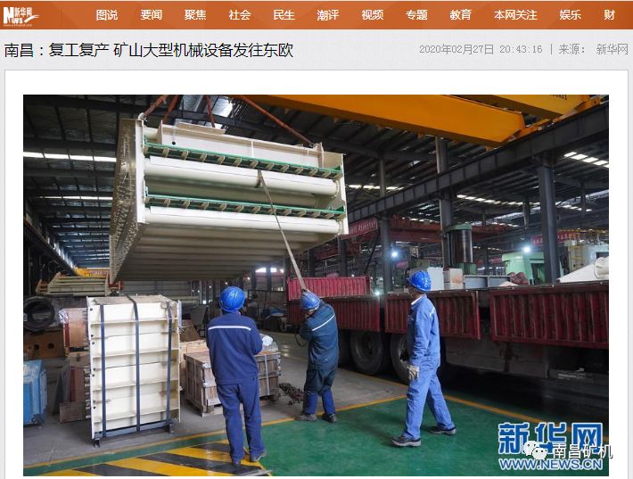 2020年2月27日,新華社記者到訪南昌礦山機械有限公司(以下簡稱“南昌礦機”),并對其通過“抗疫”與“生產(chǎn)”兩手抓,從而快速實現(xiàn)首批海外訂單交付做了報道。南昌礦機生產(chǎn)的3臺ZKR直線振動篩及1臺BS系列香蕉篩,已于當(dāng)日通過生產(chǎn)技術(shù)及質(zhì)檢部門對設(shè)備出廠前的認真仔細檢查工作,并順利完成裝車,啟程發(fā)往塞爾維亞交付客戶。