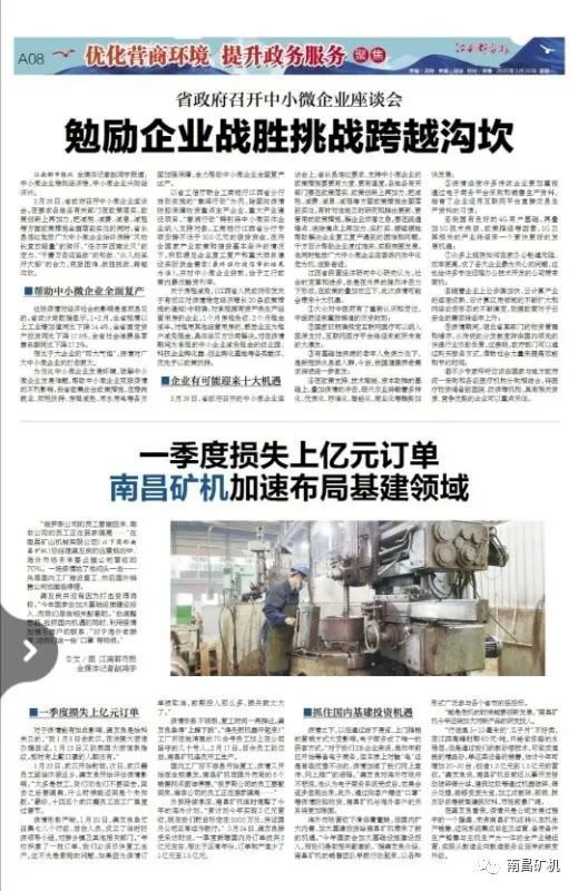 近日,南昌礦山機(jī)械有限公司(以下簡稱“南昌礦機(jī)”)總裁龔友良接受了江南都市報(bào)記者的采訪,并談到面對日益嚴(yán)峻的全球疫情,企業(yè)如何做到積極應(yīng)對,并在當(dāng)前的形勢之下迅速調(diào)整經(jīng)營戰(zhàn)略,搶抓機(jī)遇。采訪報(bào)道中還提到,龔友良總裁認(rèn)為“疫情只是公司發(fā)展過程中的一個(gè)插曲,未來南昌礦機(jī)還將從主機(jī)生產(chǎn)銷售,邁向系統(tǒng)集成總包及運(yùn)營、備用備件生產(chǎn)銷售與主機(jī)生產(chǎn)為一體的全產(chǎn)業(yè)鏈運(yùn)營,實(shí)現(xiàn)從制造業(yè)向制造服務(wù)業(yè)延伸的蛻變升級” 。