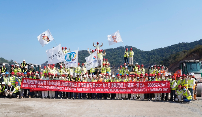 ? ? 近日,中國電建老撾南屯1水電站項目再傳捷報:碾壓混凝土澆筑月紀(jì)錄達361333立方米,創(chuàng)下同類工程項目月澆筑量的世界第一;碾壓混凝土和常態(tài)混凝土澆筑總量取得388624.9立方米的傲人成績,充分證實了中國水利水電第三工程局有限公司(下稱“水電三局”)在碾壓混凝土施工方面的優(yōu)勢與實力。老撾南屯1水電站砂石系統(tǒng)項目是南昌礦山機械有限公司(下稱“南昌礦機”)繼幾內(nèi)亞凱樂塔水電站骨料項目之后,與水電三局的再一次合作。