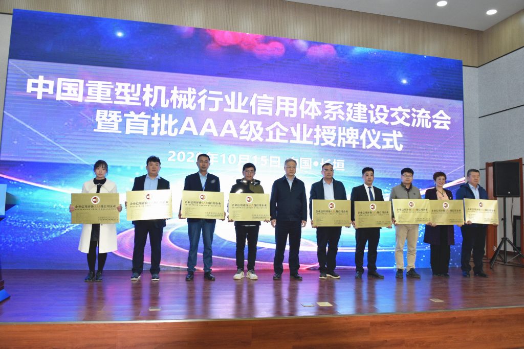 ? ? 10月15日,中國重型機械行業(yè)信用體系建設交流會暨首批AAA級企業(yè)授牌儀式在河南省長垣市舉辦。中國重型機械工業(yè)協(xié)會理事長韓珍堂,中國重型機械工業(yè)協(xié)會常務副理事長景曉波,中國重型機械工業(yè)協(xié)會副理事長兼秘書長王繼生,中國商務信用聯(lián)盟秘書長武興華,長垣市委副書記、市長趙軍偉等人出席會議。會上,南昌礦山機械有限公司(以下簡稱“南昌礦機”)被評為中國重型機械工業(yè)協(xié)會首批AAA級信用企業(yè)。