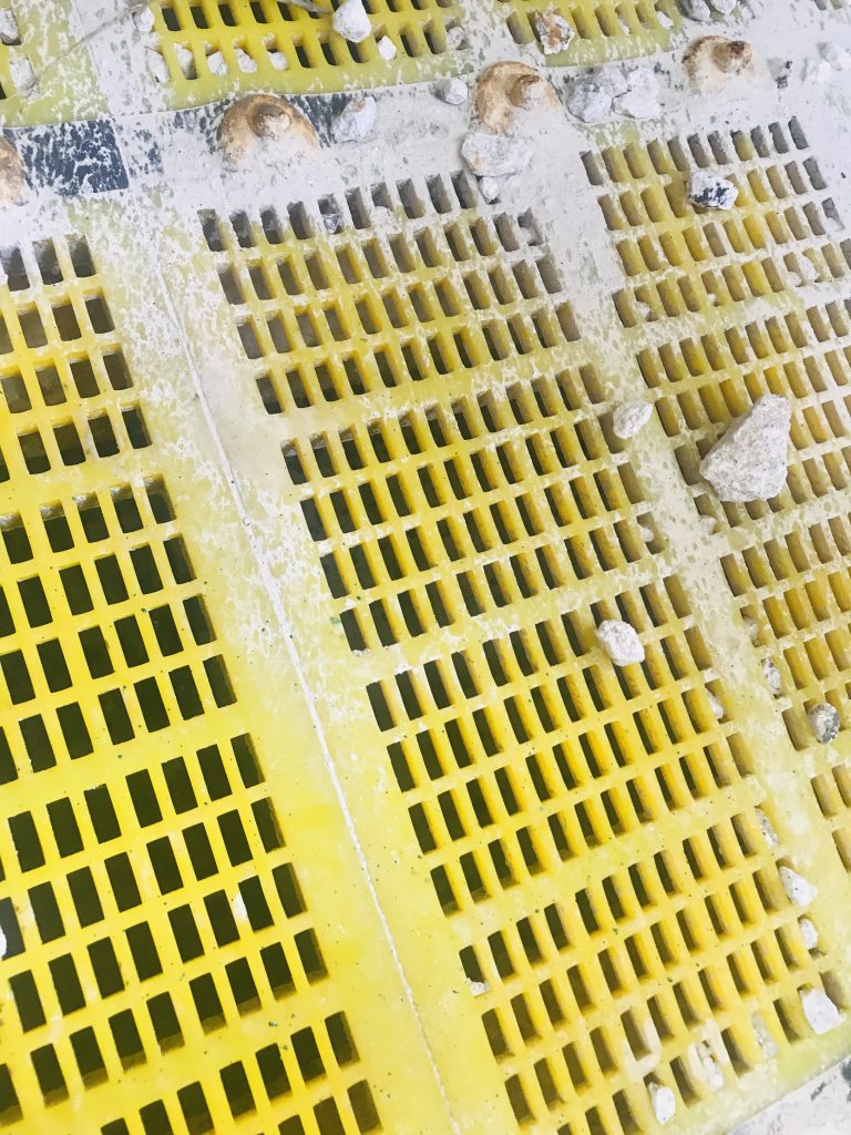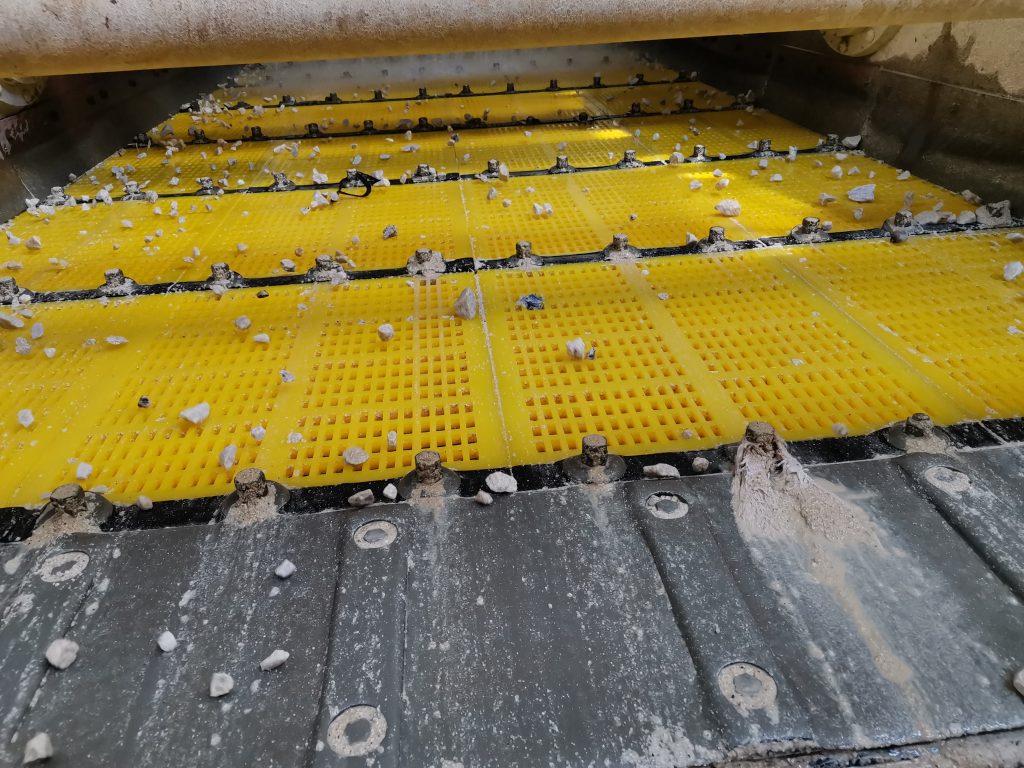 ? ? 無奈之下,宜春鉭鈮礦的工作人員準備使用某國外著名品牌的橡膠篩網(wǎng),但更換成本高、改造時間長等因素讓他們一直猶豫。在猶豫之時,南昌鑫力的技術人員為他們帶來了滿意的解決方案,即不改變原篩網(wǎng)結構型式,將原來14x30mm的孔改為12x30mm,將普通聚氨酯篩網(wǎng)更換為南昌鑫力生產的MDI雙硬度防堵篩網(wǎng)。該方案得到了江鎢集團領導和宜春鉭鈮礦領導的認可,雙方于2020年3月簽訂了合同,4月26日篩網(wǎng)安裝完成并投入使用。