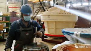 走進南昌礦機的生產(chǎn)車間,從零部件制作,到裝配、檢驗等各個工序,工人們嚴格按照疫情防控規(guī)定,在各自的工位有序而忙碌的工作。