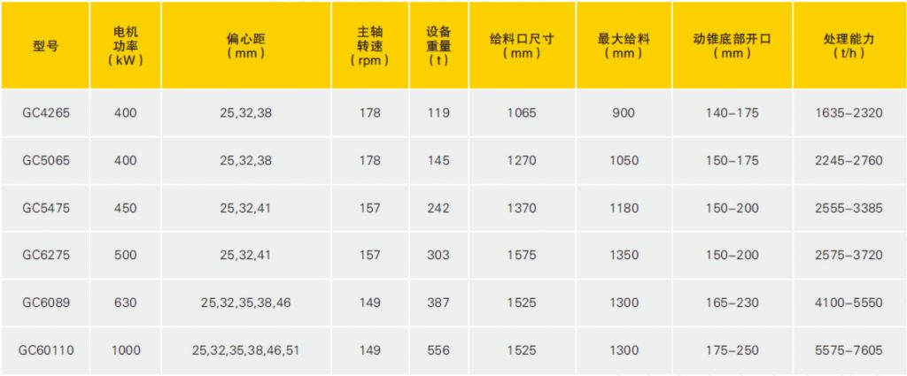 GC4265旋回破碎機松邊排礦口為150mm,破碎軟巖時,150mm產(chǎn)品通過率為90%。